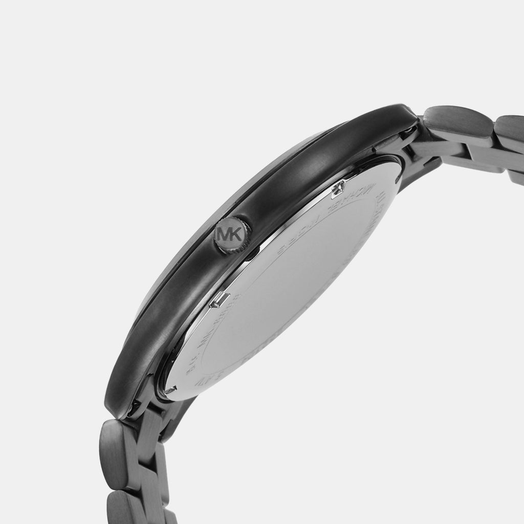 Michael Kors Slim Runway Quartz Black Dial Grey Steel Strap Watch For Men - MK1044