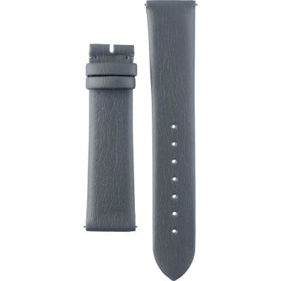 Silver-tone stainless steel case with a grey leather strap. Fixed silver-tone stainless steel bezel. Grey dial with silver-tone hands. The signature movardo dot appears at the 12 o'clock position. Dial Type: Analog. Quartz movement. Scratch resistant sapphire crystal. Pull / push crown. Solid case back. Round case shape. Case size: 35 mm. Tang clasp. Water resistant at 30 meters / 100 feet. Functions: hour, minute. Dress watch style. Watch label: Swiss Made. Movado Museum 70th Anniversary Grey Dial Ladies Watch 0607144.