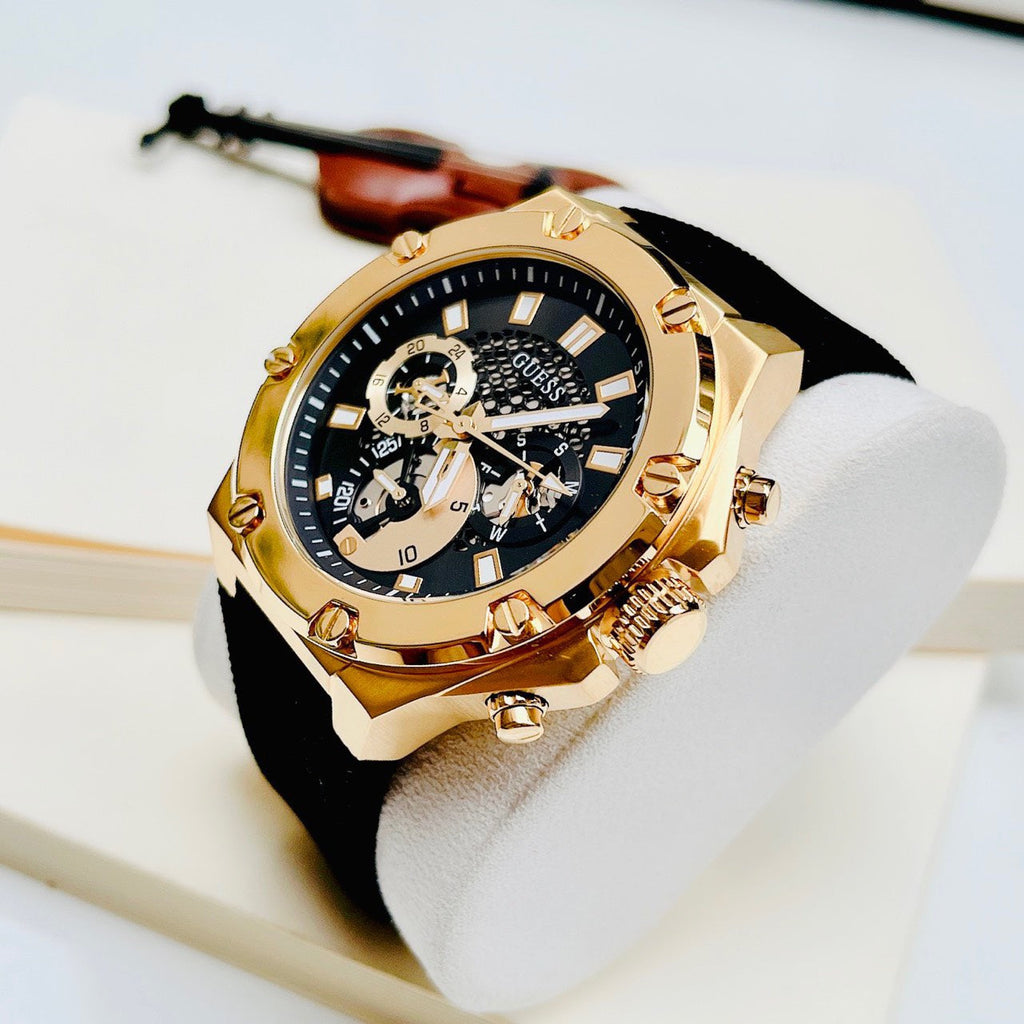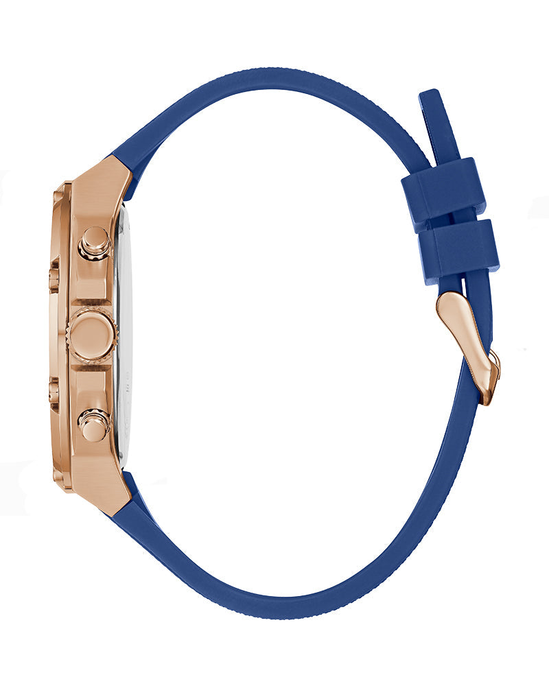 WHY IT’S SPECIAL Give your wrist a classy look with this men's watch by Guess. Encased in a 46 mm case, the round dial is protected by a crystal glass. It features multifunction functionality and a crown for time adjustment. The strap is crafted with care using silicon that gives a good finish.