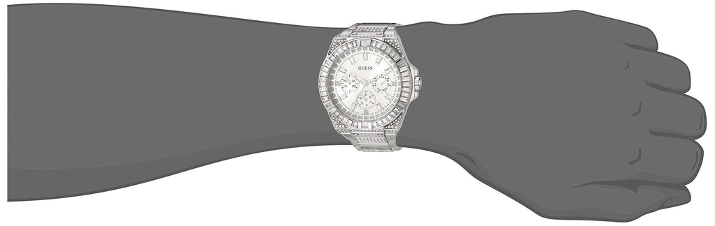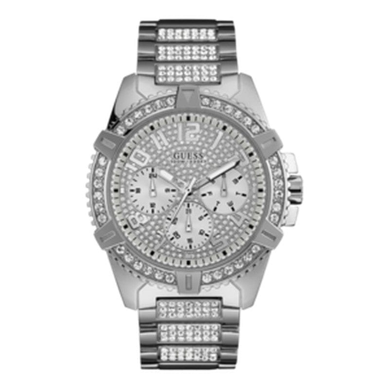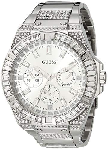 Bling it on with this oversized timepiece! Boasting 213 crystals on the case, multifunction dial and bracelet this stainless steel bracelet is sure to grab everyones attention.