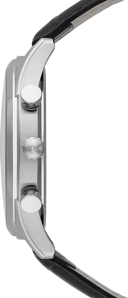 Hugo Boss Ambassador Chronograph Quartz Black Dial Black Leather Strap Watch For Men - HB1513194