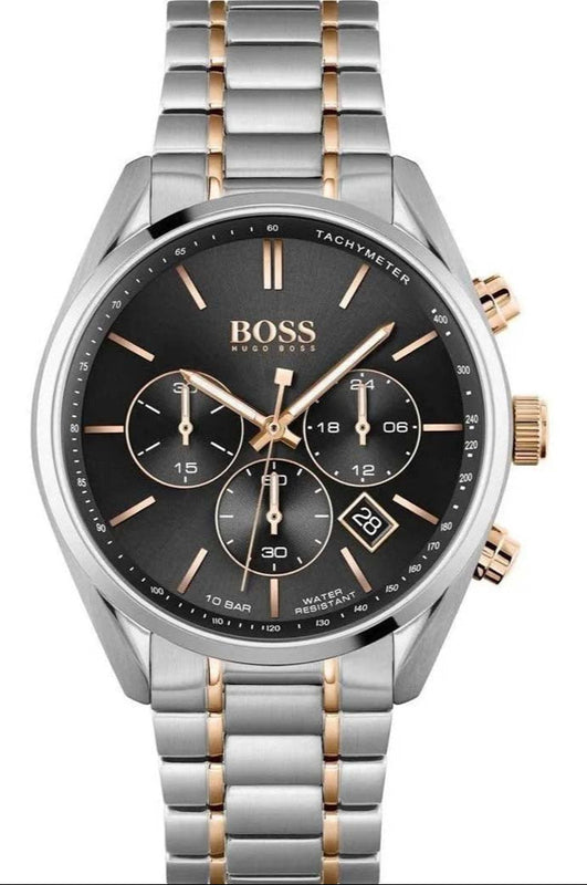 Hugo Boss Champion Chronograph Black Dial Two Tone Steel Strap Watch for Men - 1513819