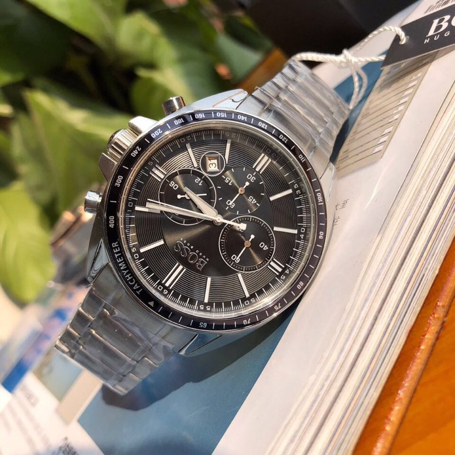 Hugo Boss Driver Chronograph Black Dial Silver Steel Strap Watch For Men - 1513080