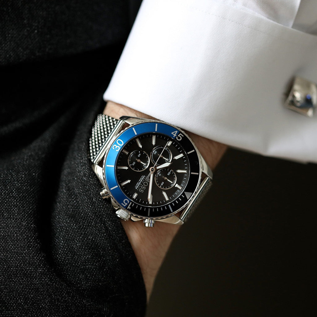 Hugo Boss Ocean Edition Black Dial Silver Mesh Strap Watch for Men - 1513742