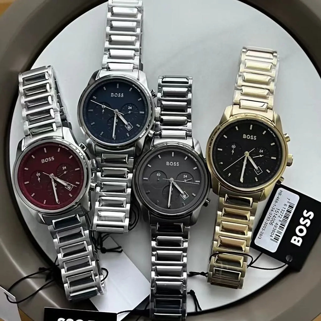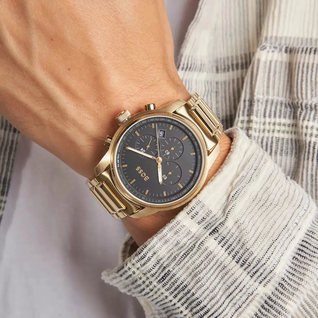 Hugo Boss Trace Chronograph Black Dial Gold Steel Strap Watch For Men - 1514006
