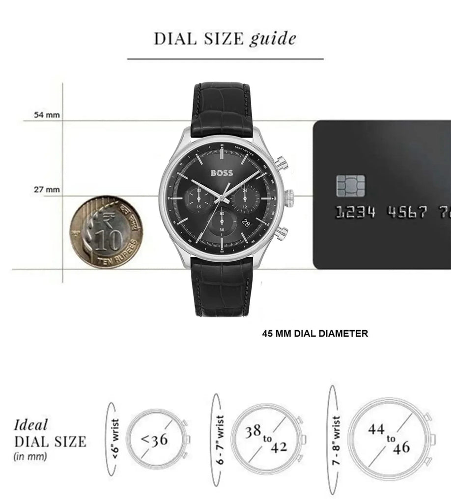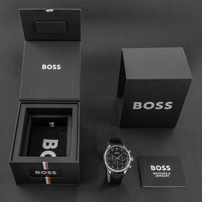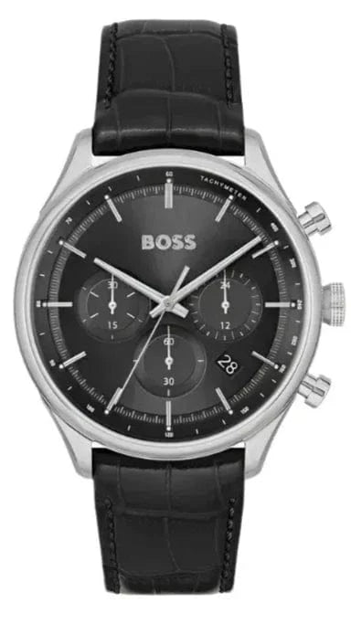 Hugo Boss Gregor Chronograph Black Dial Black Leather Strap Watch for Men - 1514049