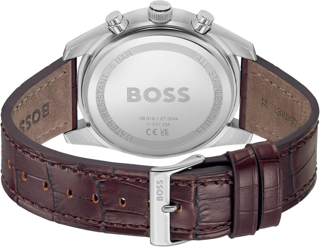 Hugo Boss Skytraveller Chronograph Blue Dial Brown Leather Strap Watch for Men - 1514194
