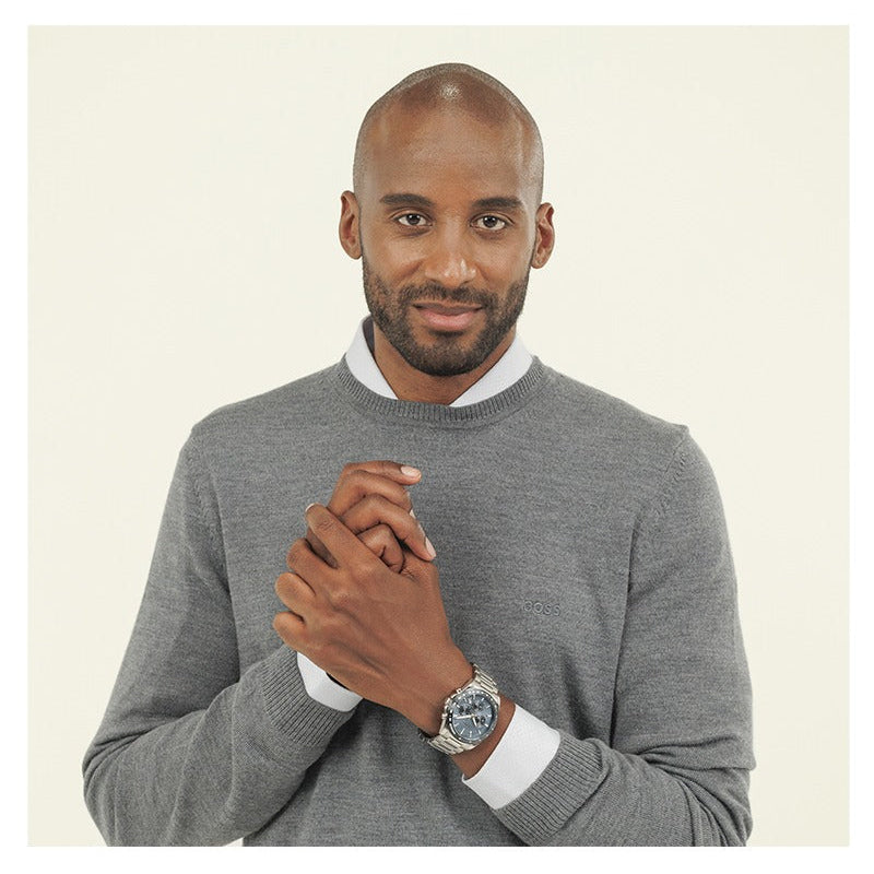 This Hugo Boss watch has a case made of stainless steel with a diameter of 41 mm and is fitted with a stainless steel band. Inside the case lies a Seiko Instruments Inc. movement and the watch features a Mineral crystal.