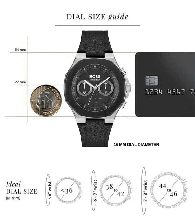 Elevate your style with the Hugo Boss Taper Chronograph, featuring a sleek black dial and a sophisticated black leather strap. Designed for men who appreciate precision and elegance, this watch combines a modern chronograph function with timeless craftsmanship. Its bold yet refined look makes it perfect for both professional settings and casual outings, ensuring you stay punctual and stylish every day.