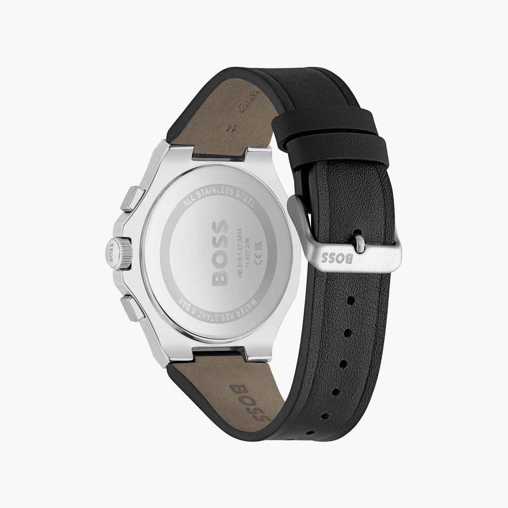 Hugo Boss Taper Chronograph Black Dial Black Leather Strap Watch for Men - 1514085