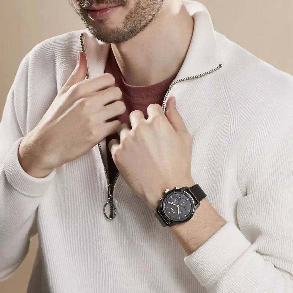 Elevate your style with the Hugo Boss Trace Chronograph, featuring a sleek black dial and a sophisticated black leather strap. Designed for men who appreciate precision and elegance, this watch combines functionality with timeless design. The chronograph feature adds practicality, while the refined leather strap ensures comfort and durability. Perfect for both professional and casual settings, this timepiece makes a confident statement on your wrist.