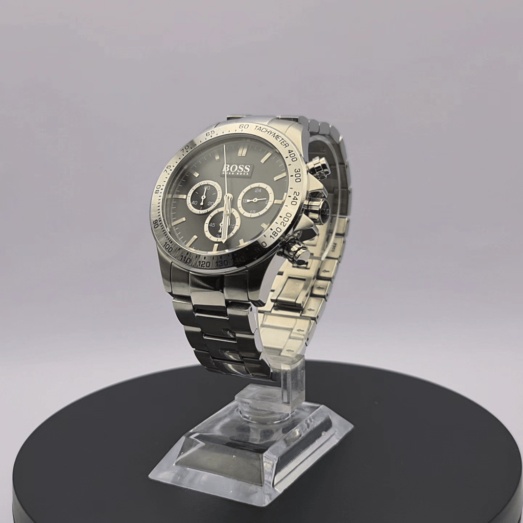 Hugo Boss Ikon 1512965 is a functional and special Gents watch . Case is made out of Stainless Steel and the Black dial gives the watch that unique look. The features of the watch include (among others) a chronograph.