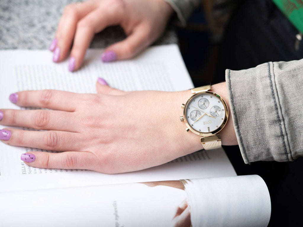 Hugo Boss Flawless White Dial Gold Mesh Bracelet Watch for Women - 1502552