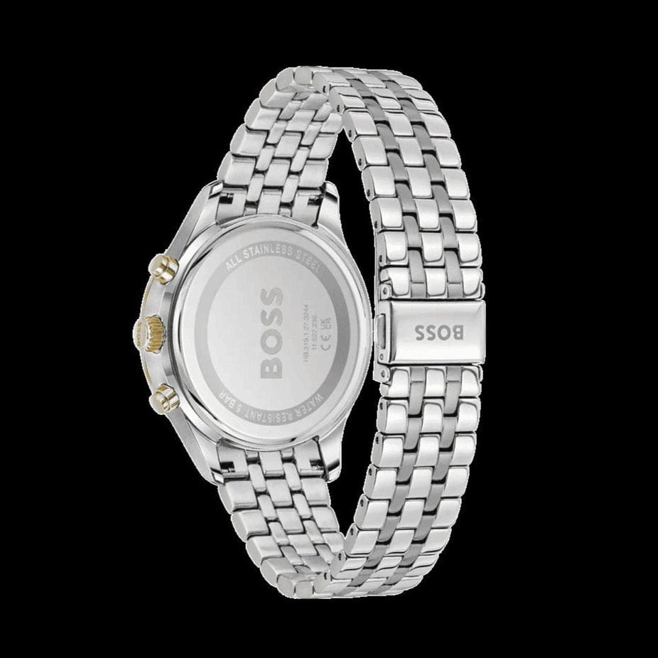 This Hugo Boss watch has a case made of stainless steel with a diameter of 42 mm and is fitted with a metal band. Inside the case lies a Seiko Instruments Inc. movement and the watch features a Mineral crystal. The watch is 5 ATM. Deployment clasp with push buttons.