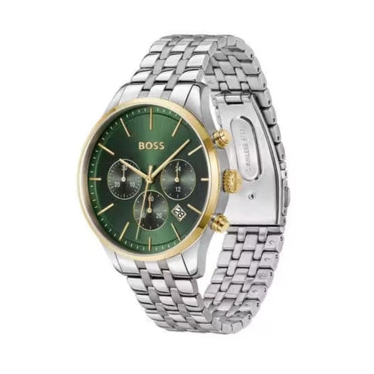 Hugo Boss Avery Chronograph Green Dial Silver Steel Strap Watch for Men - 1514159