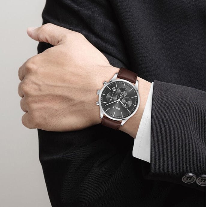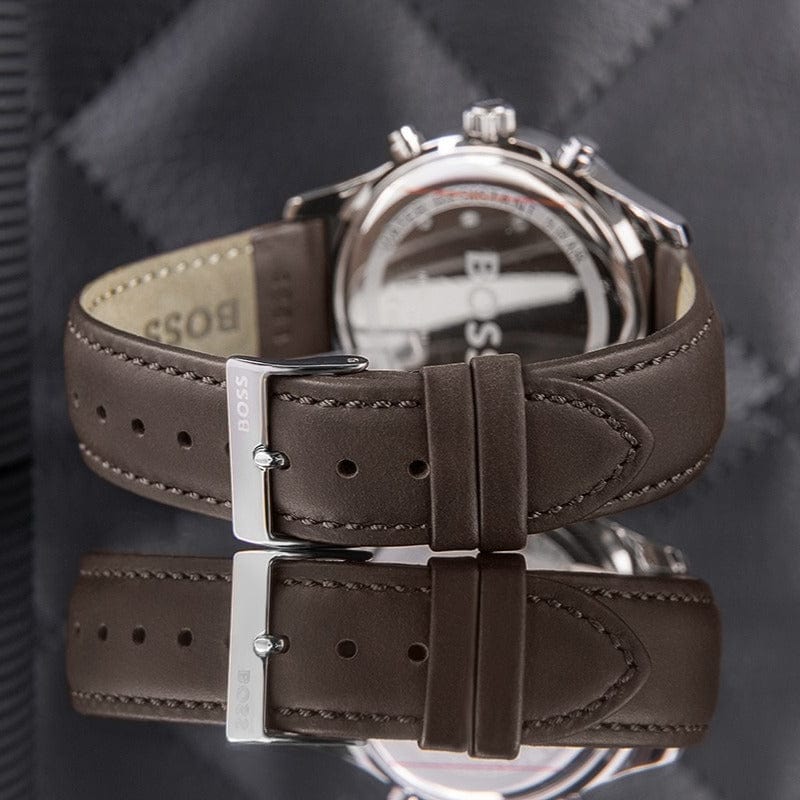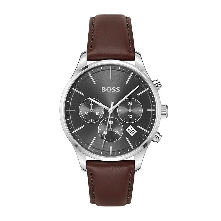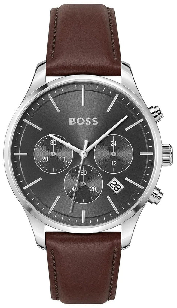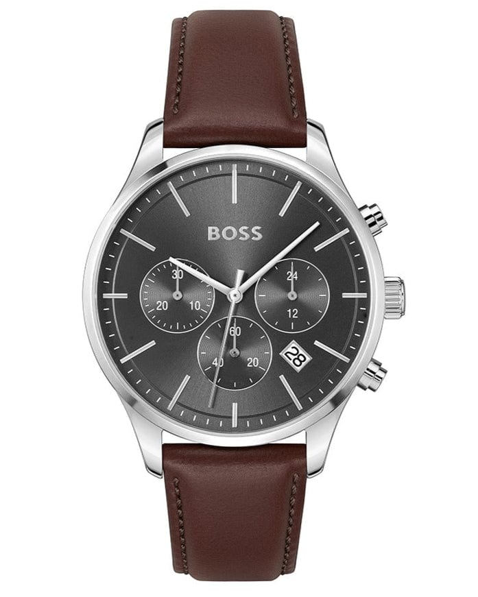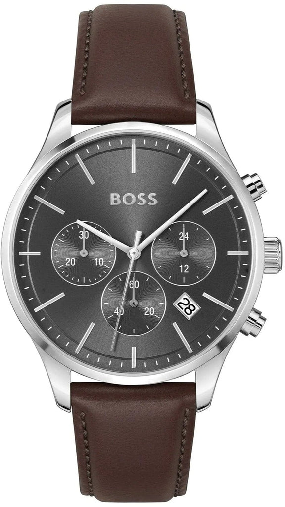 Hugo Boss Avery Chronograph Grey Dial Brown Leather Strap Watch for Men - 1514155