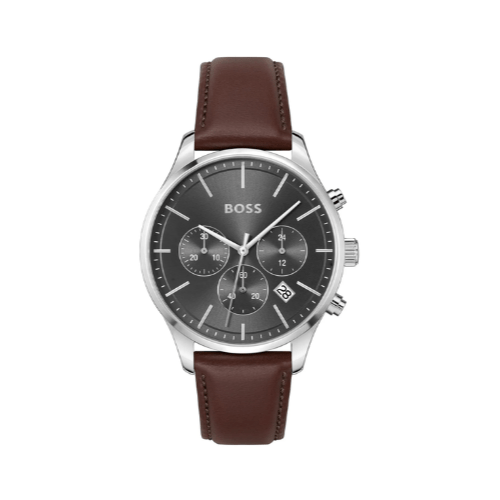 Elevate your style with the Hugo Boss Avery Chronograph, featuring a sleek grey dial and a rich brown leather strap. Designed for men who appreciate both function and fashion, this watch offers precise chronograph timing and a sophisticated look that complements any outfit. Durable and refined, it’s the perfect accessory to enhance your everyday elegance.