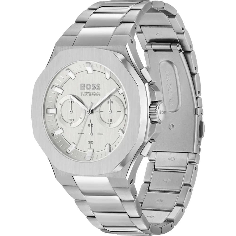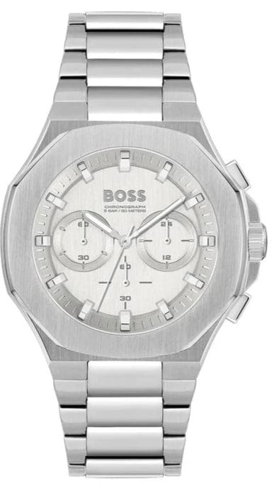 Hugo Boss Taper Chronograph White Dial Silver Steel Strap Watch for Men - 1514087