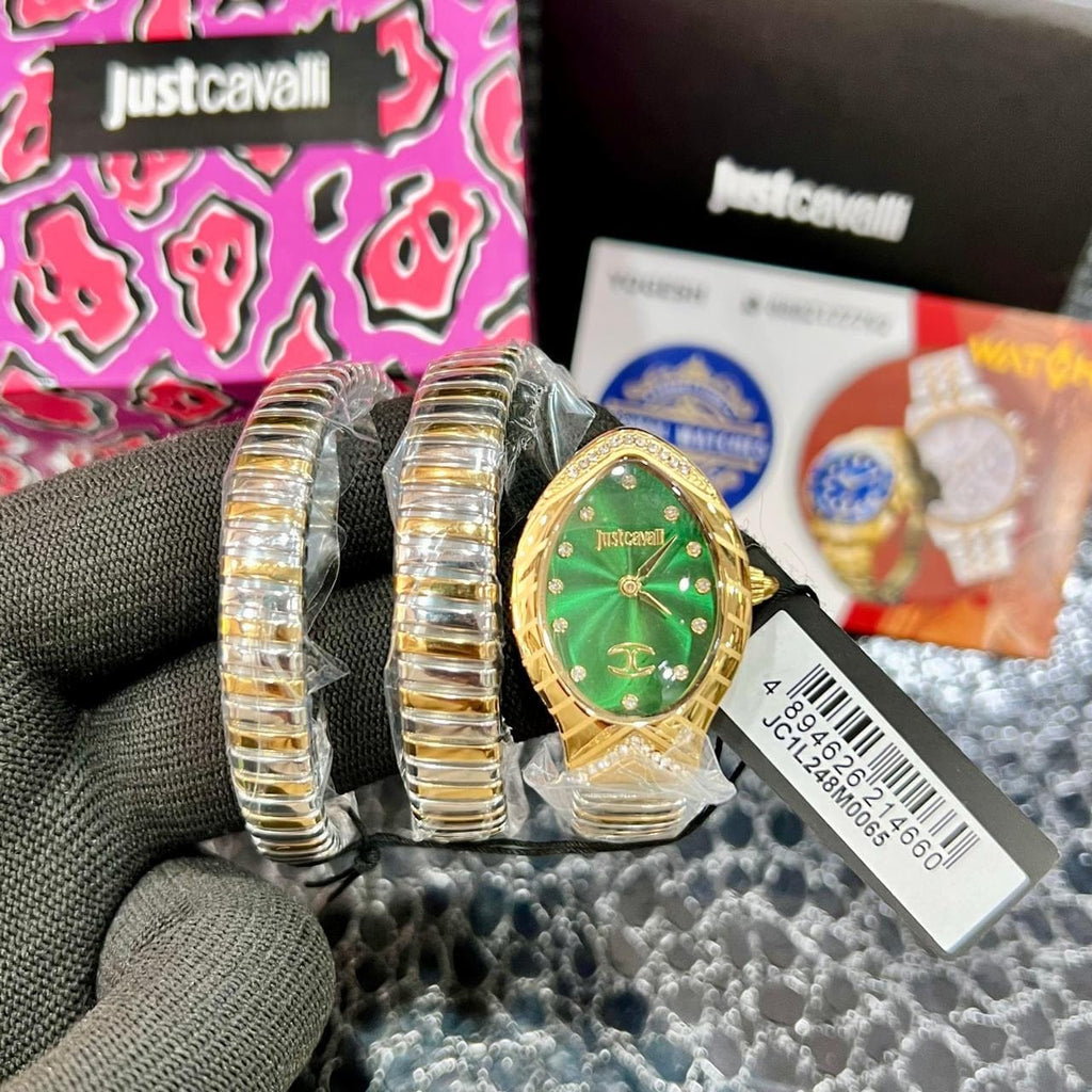 Just Cavalli Classico Lungo Green Dial Two Tone Steel Strap Watch for Women - JC1L248M0065