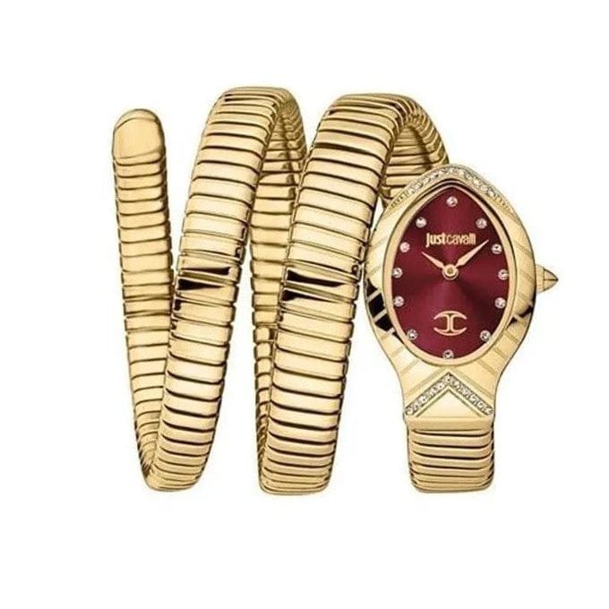 Just Cavalli Classico Lungo Red Dial Gold Steel Strap Watch for Women - JC1L248M0035