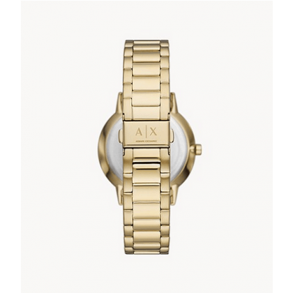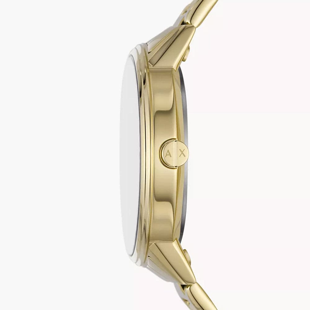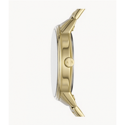 - Gold plated stainless steel bracelet with 2 pusher foldover clasp closure; interchangeable with armani exchange 20mm watch straps