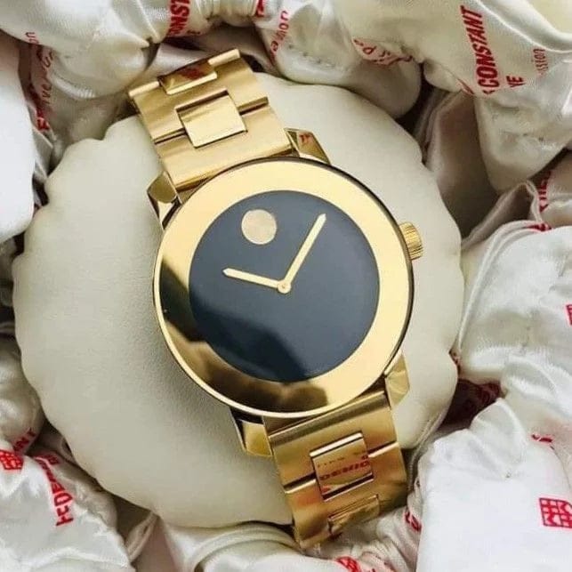 This stylish Movado Bold watch features a sleek black dial and a gold steel strap for a bold and sophisticated look. With its unisex design, this watch offers versatile wear for both men and women. Elevate any outfit with this timeless timepiece.