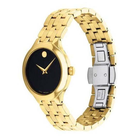 Movado Museum Classic Quartz Black Dial Gold Steel Strap Watch For Women - 0607005