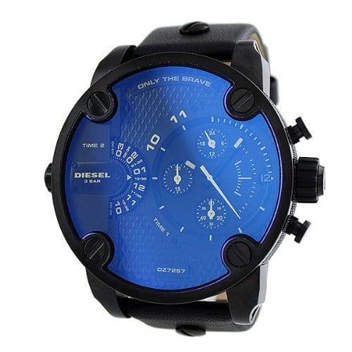 Diesel Little Daddy Blue Dial Black Leather Strap Watch For Men - DZ7257
