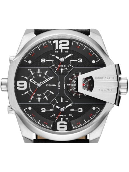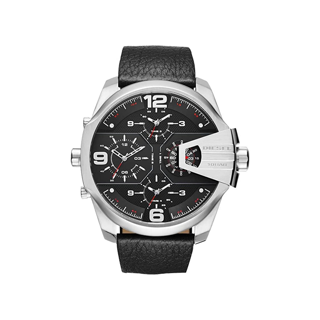 Diesel Uber Chief Oversized 4 Time Black Dial Leather Strap Watch For Men - DZ7376