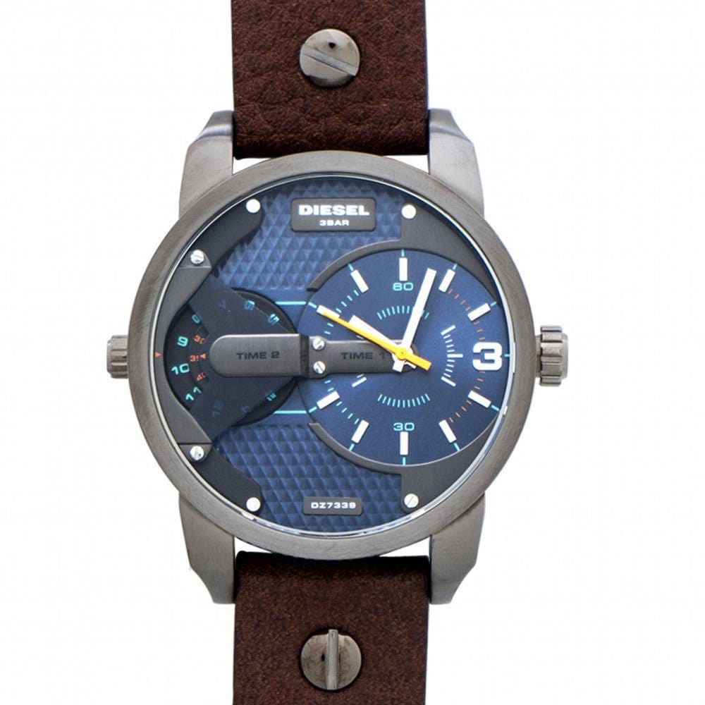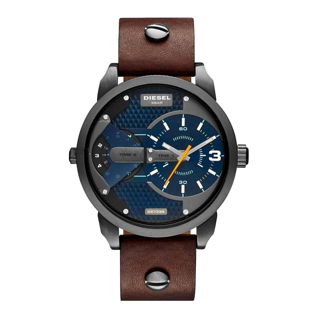 Diesel Mini Daddy Analog Blue Dial Brown Leather Strap Watch For Men - DZ7339