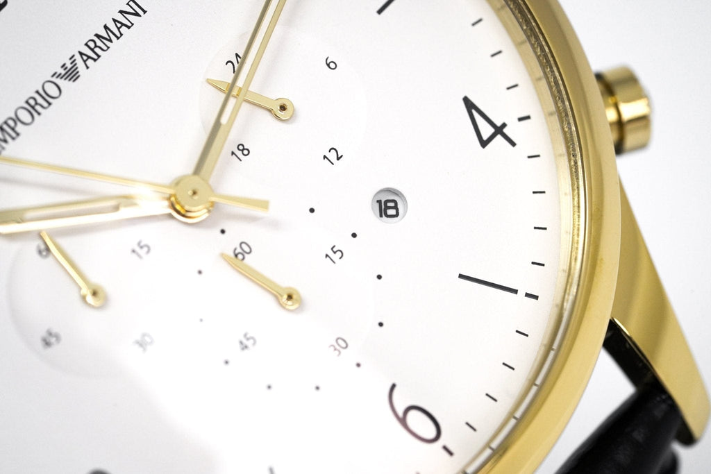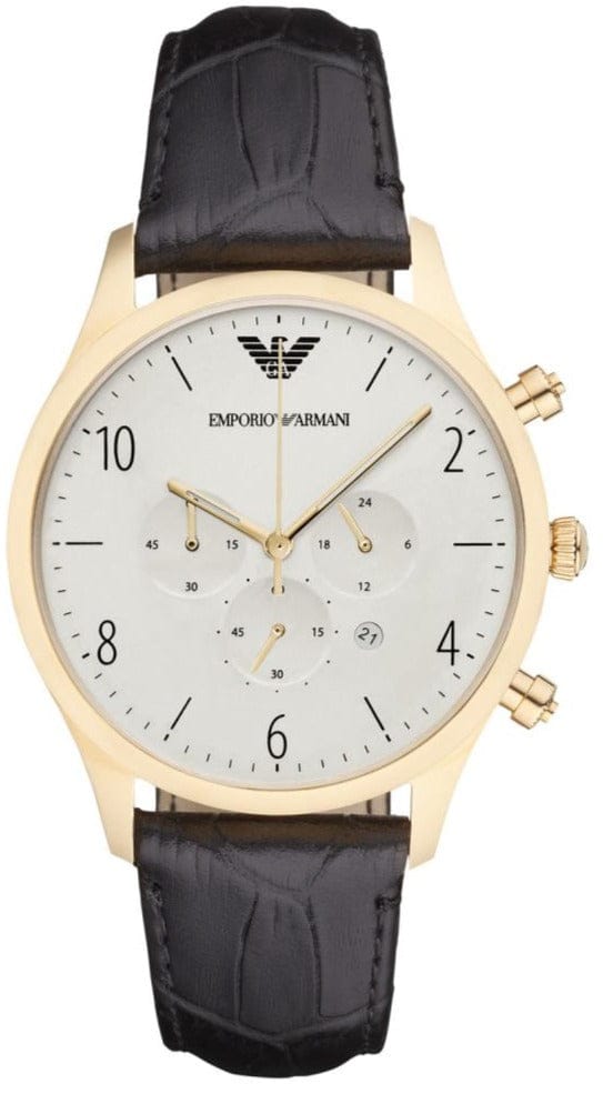 Emporio Armani Classic Chronograph White Dial Black Leather Strap Watch For Men - AR1892