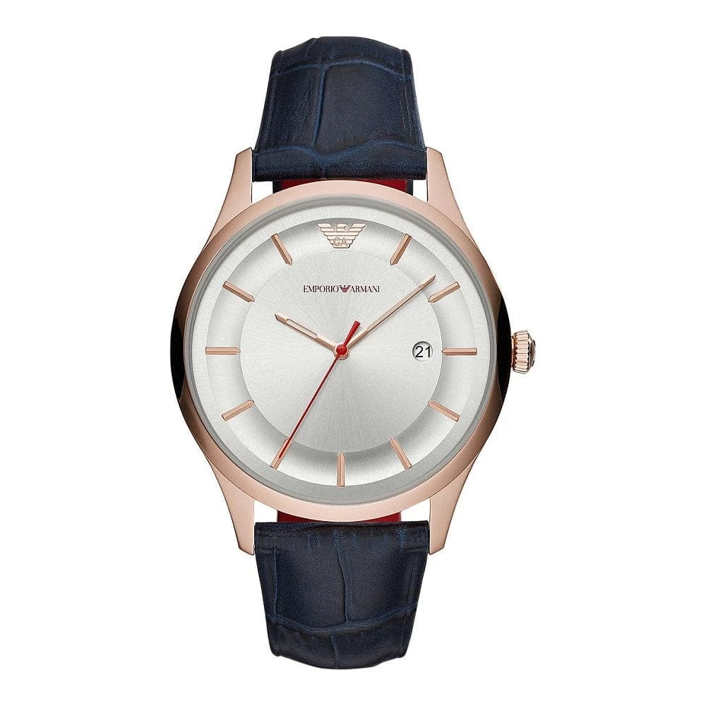 Emporio Armani Classic Silver Dial Blue Leather Strap Watch For Men - AR11131