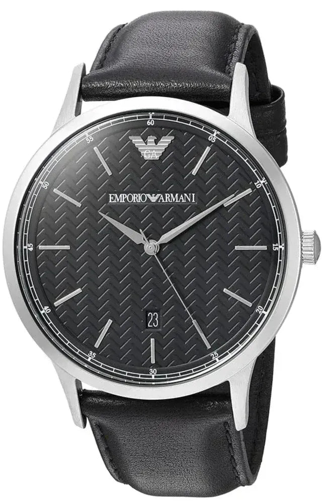 Emporio Armani Renato Analog Black Dial Black Leather Strap Watch For Men - AR8035