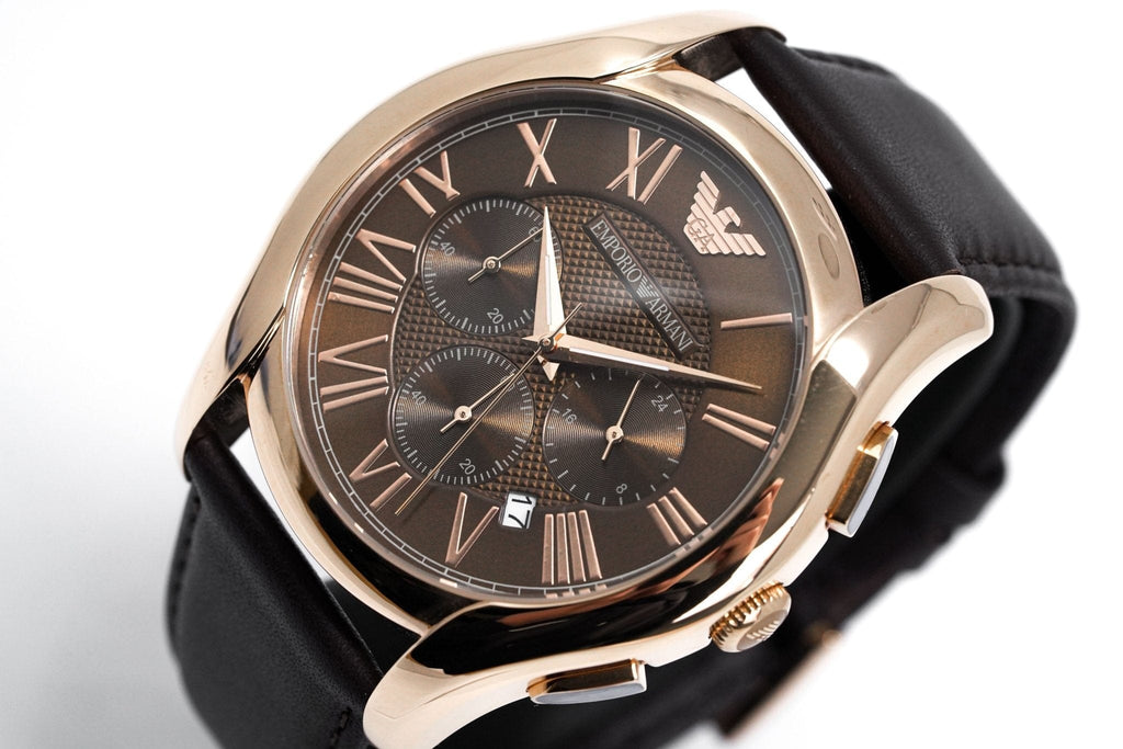 Emporio Armani Chronograph Brown Dial Brown Leather Strap Watch For Men - AR1701