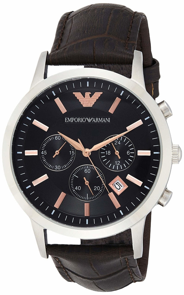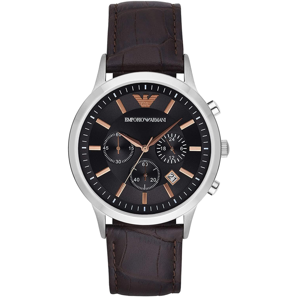 Emporio Armani Renato Chronograph Grey Dial Brown Leather Strap Watch For Men - AR2513