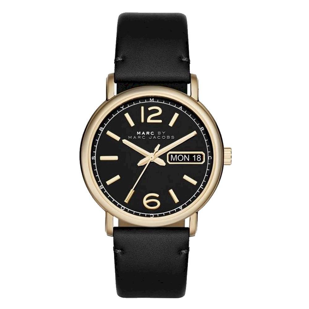 Marc Jacobs Fergus Black Dial Black Leather Strap Watch for Women - MBM8651