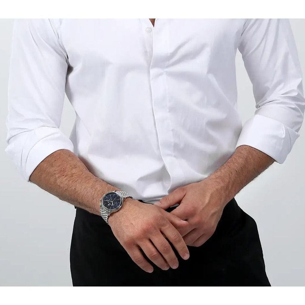 Introducing the Maserati Epoca Chronograph! This striking watch for men features a bold blue dial and a sleek silver steel strap. With its impeccable style and precise chronograph function, this watch is perfect for making a statement. Upgrade your timepiece game with the Maserati Epoca Chronograph.