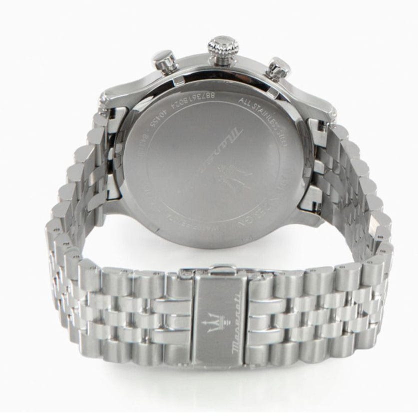A must-have timepiece for all the watch aficionados, this men's analog watch from MASERATI will be a perfect pick. The blue round dial is protected by a mineral glass. The stainless steel strap comes in a silver hue that further elevates the look of the timekeeper. Besides, it is completed with a fold over push button clasp with safety clasp to ensure a secure fit on the wrist.