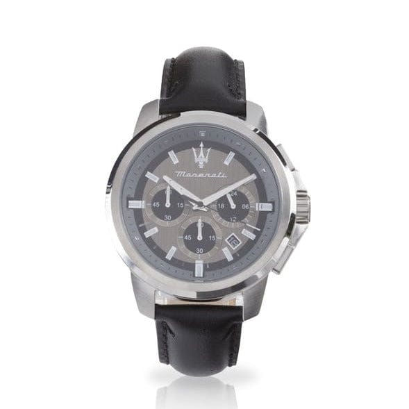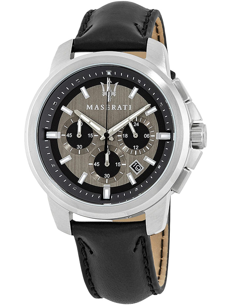 Maserati Successo 44mm Grey Dial Black Leather Strap Watch For Men - R8871621006
