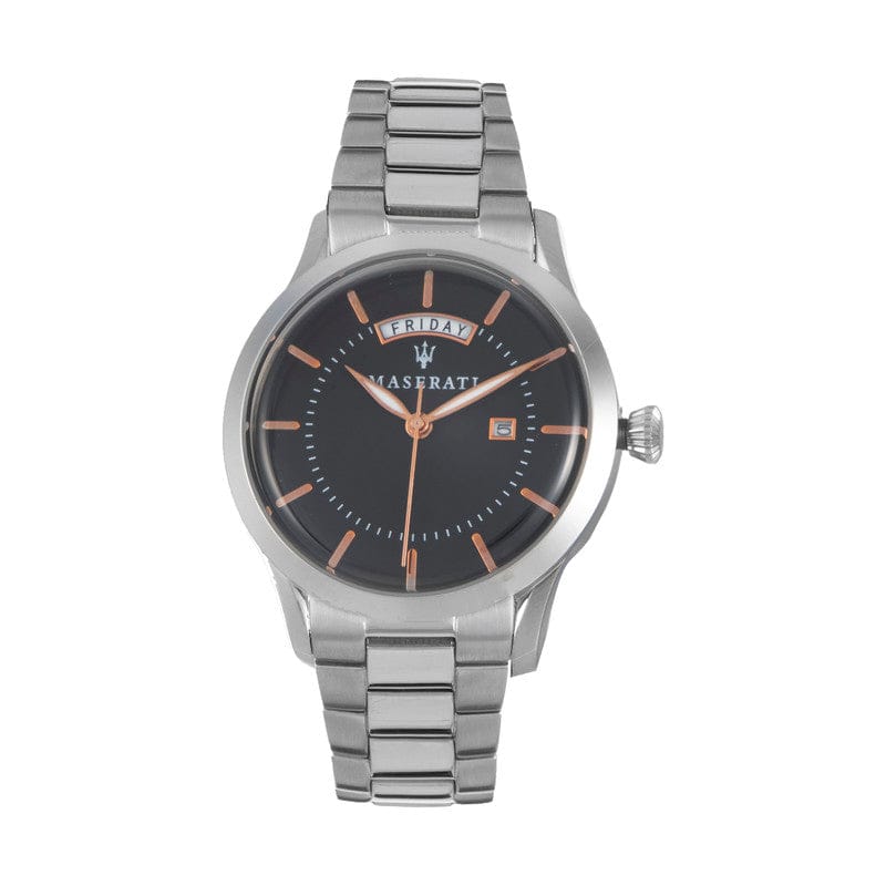 The bracelet made of high-quality stainless steel perfectly complements the watch's design. A mineral crystal provides a great protection against shocks and scratches and perfectly goes with the black case. The watch has a water resistance of 50 meters. Maserati R8853125002 is an authentic watch from an authorised dealer. The product is covered by the manufacturer's warranty and is packed in the original box.