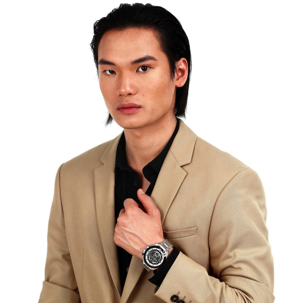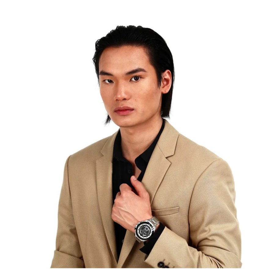 • The case of this model is made of brushed stainless steel and measures 45mm in diameter.
