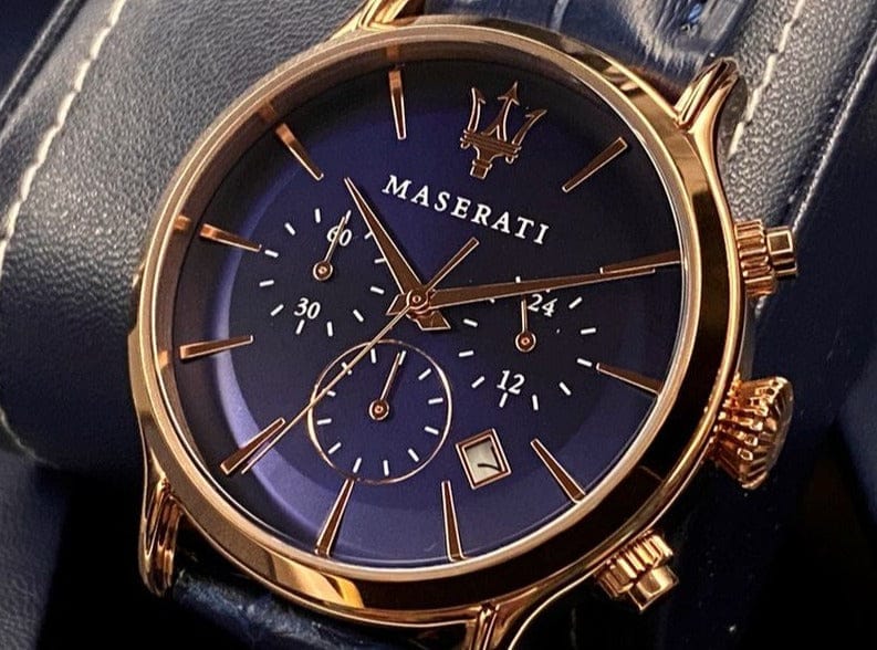 Maserati Epoca Blue Dial Leather Blue Strap Watch For Men - R8871618007