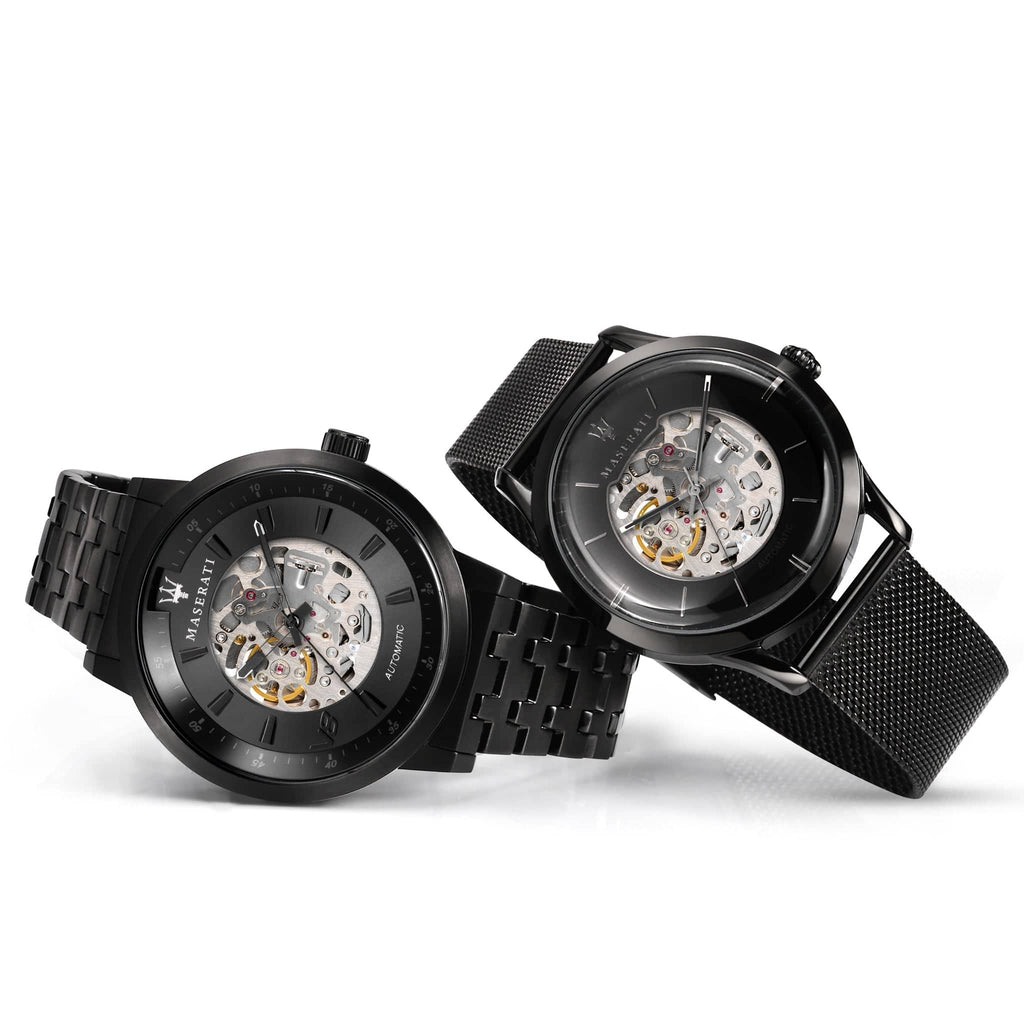 Maserati Granturismo Sport GT Skeleton Black Dial Black Steel Strap Watch For Men - R8823134003