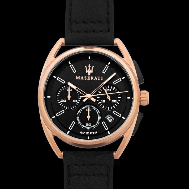 Maserati Trimarano Chronograph Black Dial Leather Strap Watch For Men - R8871632002