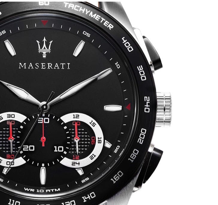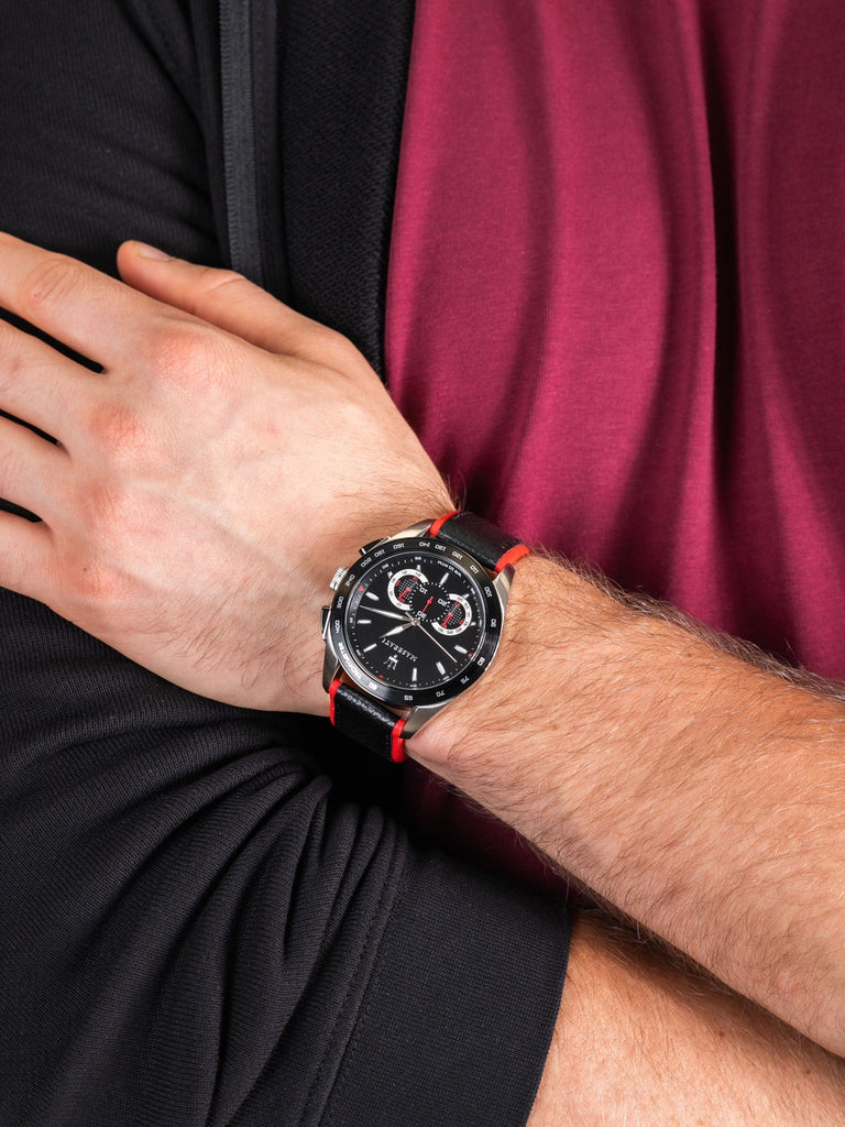 Maserati Traguardo Black Dial Black Leather Strap Watch For Men - R8871612028