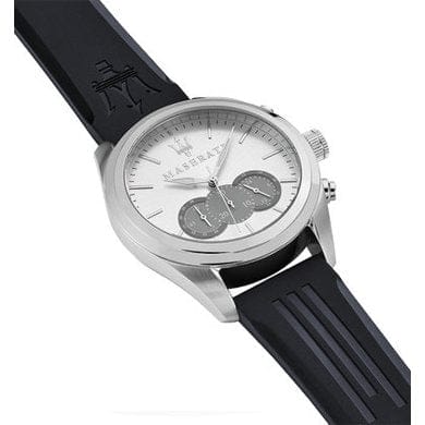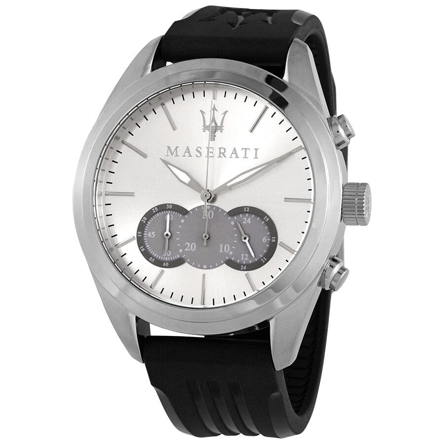 Maserati Traguardo Chronograph Silver Dial Black Rubber Strap Watch for Men - R8871612012