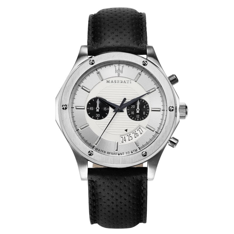 Maserati Circuito Chronograph Analog White Dial Black Leather Strap Watch for Men - R8871627005