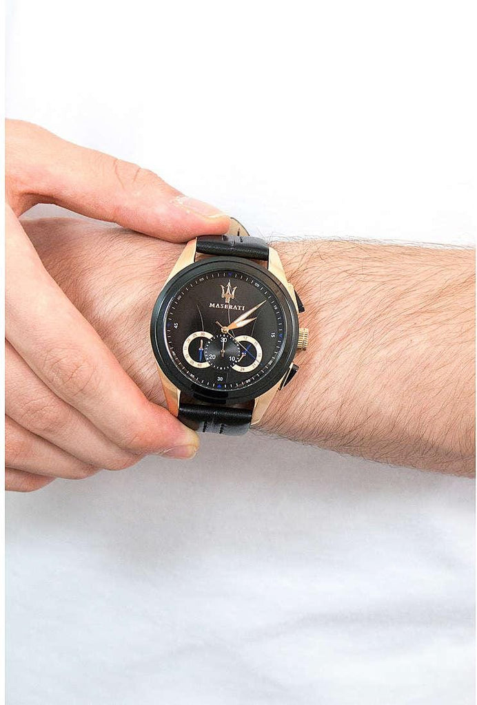Maserati Traguardo 45mm Black Dial Watch Black Strap For Men - R8871612025