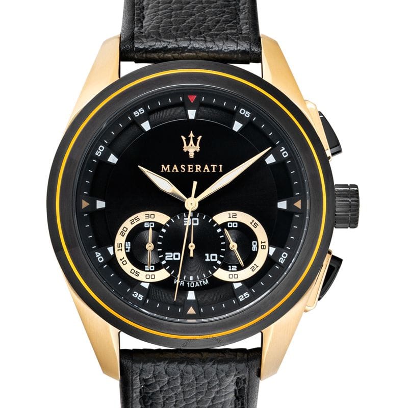 Maserati Traguardo Chronograph Black Dial Black Leather Strap Watch For Men - R8871612033