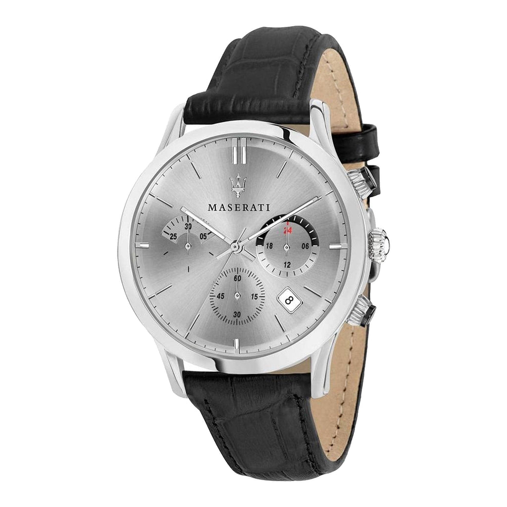Maserati Ricordo Silver Dial Black Leather Strap Watch For Men - R8871633001